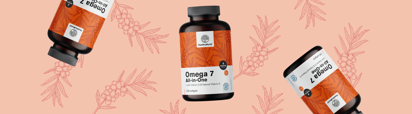Οι κάψουλες Omega-7 All-in-One συνδυάζουν 4 προσεκτικά επιλεγμένα λιπαρά οξέα: