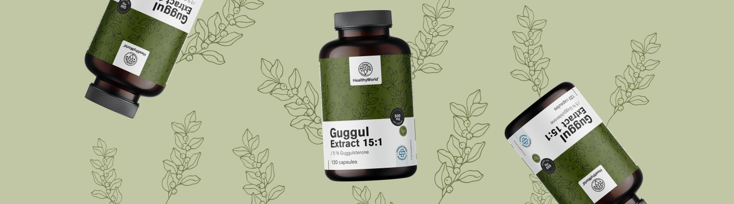 Η ρητίνη guggul εξάγεται από το δέντρο Commiphora mukul και περιέχει σημαντικές γκουγκουλστερόνες .